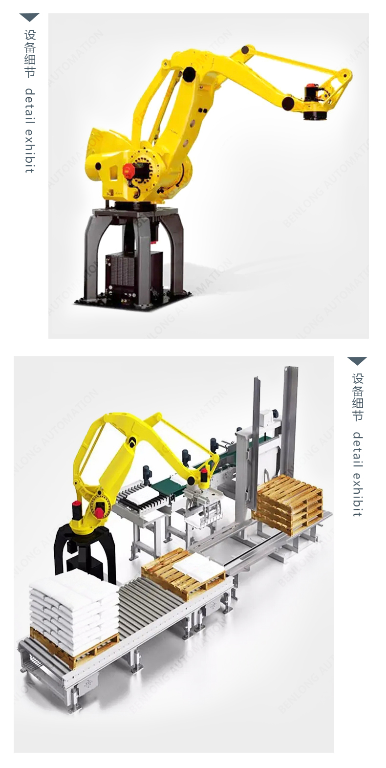 具有自动隔料分组、产品装袋、热封塑、小盒成型、产品装入小盒内、小盒贴标签、中盒成型、小盒产品装入中盒内、中盒贴标签、外箱自动成型、中盒产品装入外箱内、外箱自动贴标签、检测、喷码、封透明胶带、捆扎带、90°旋转、下料码垛、缺料报警等工序的在线监测、实时监控、质量溯源、条码识别、关键元器件寿命监测、数据存储、MES系统与ERP系统联网、参数任意配方、智慧能源分析与节能管理系统、智能装备服务大数据云平台等功能。