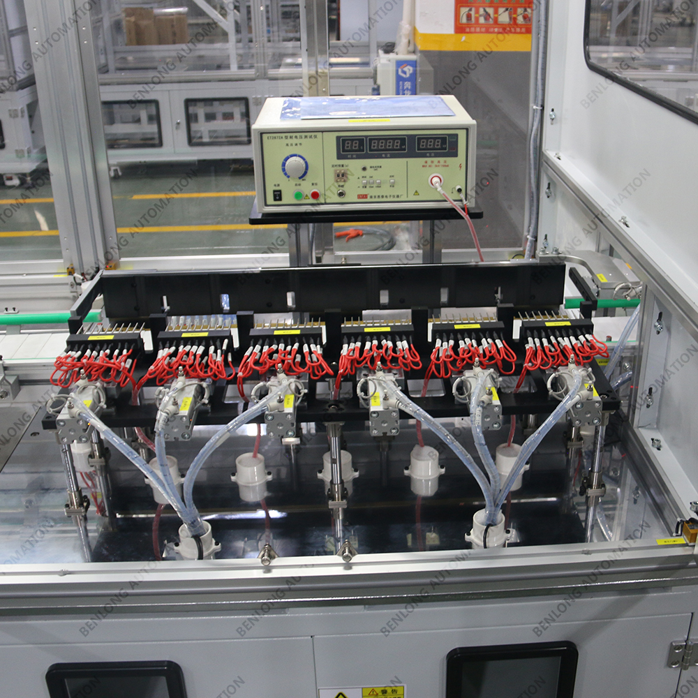 具有产品自动上料底座、装配导电柱、装配线路板、锡焊、锁螺丝、装配密封圈、装配玻璃罩、装配外圈、锁螺丝、特性检测、