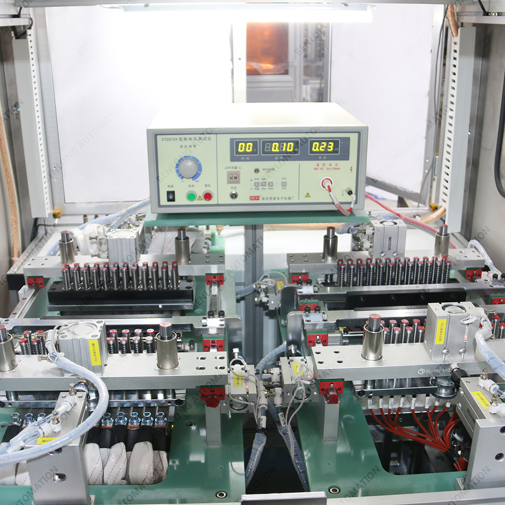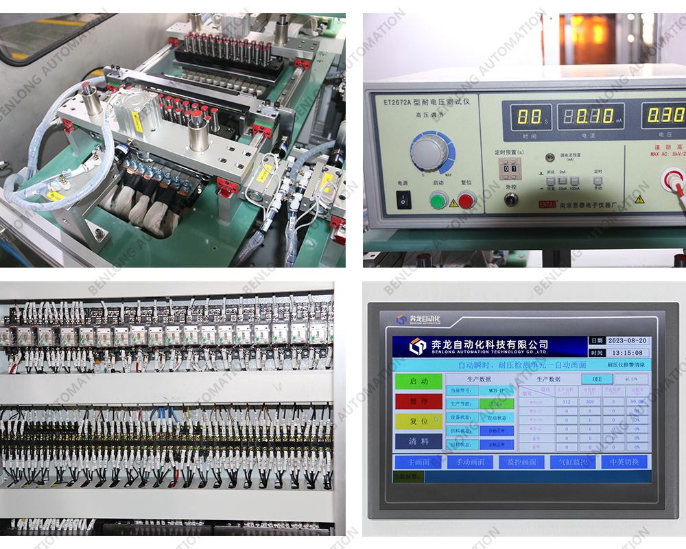 具有自动扫码/读码、低倍检测、高倍检测、CCD观察窗颜色检测、内跳外不跳、通断检测、耐压检测、不良品区分、缺料报警、