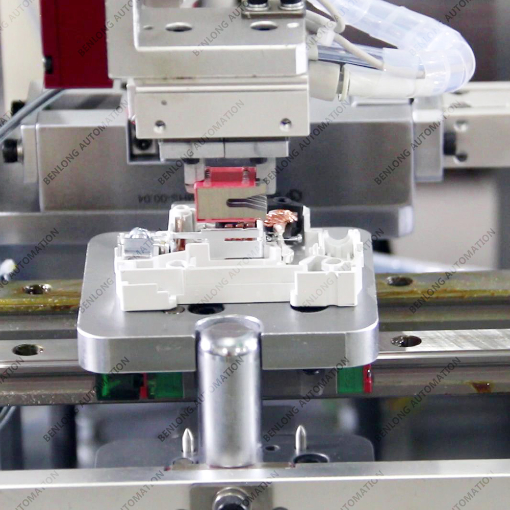 具有自动外壳上料、开盖、自动装配隔弧片、导磁片、7字片、大弹簧、手柄弹簧、调节螺丝、磁组件、接线柱组件、铁芯组件、双金组件、锁扣、锁扣轴、手柄轴、手柄、跳扣、跳扣轴、U型件、