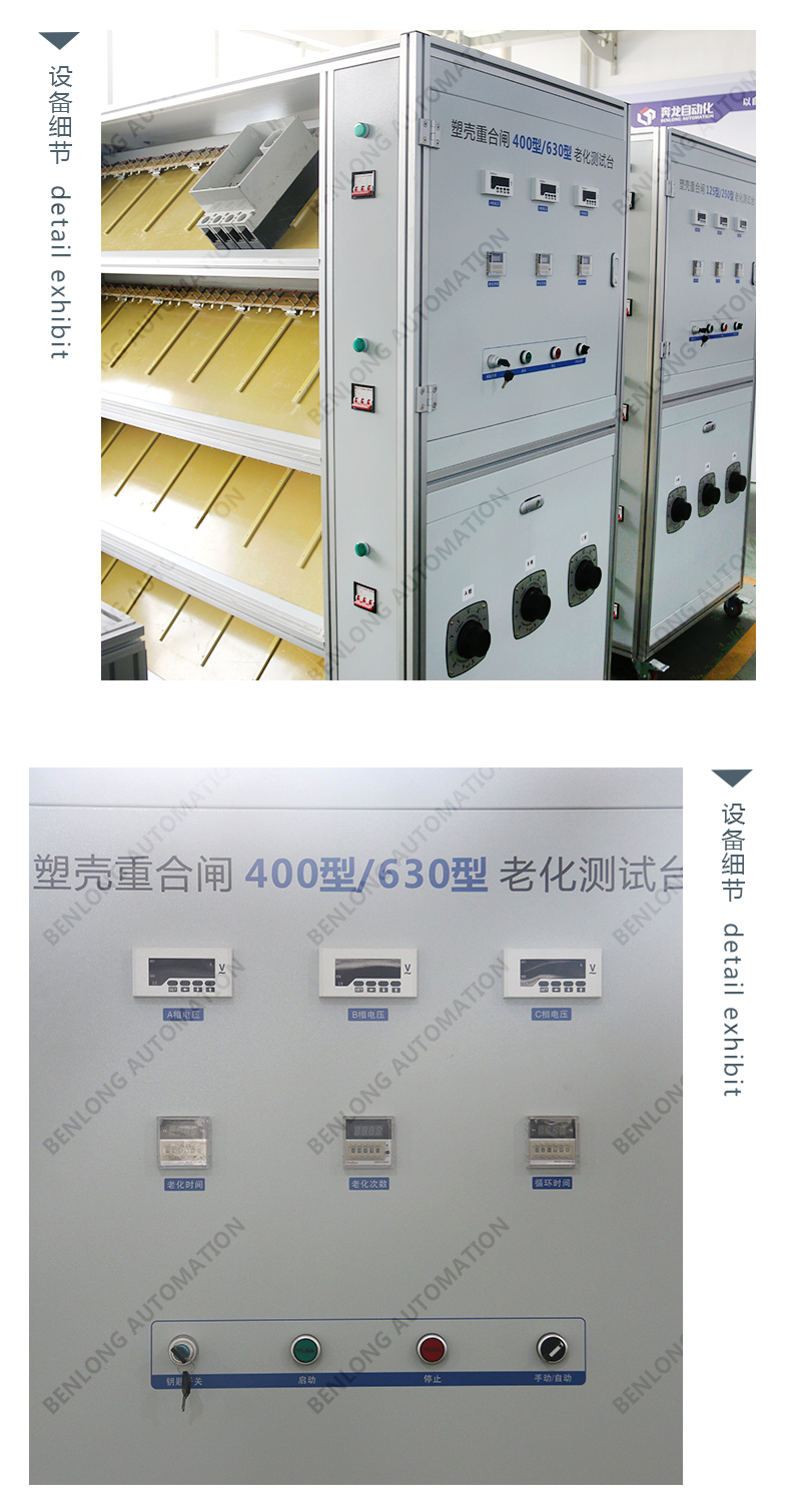 具有工位数可定制、63A~800A兼容、人工上料、条码识别、不良品显示、不良品监控数据、检测时间可任意设定、检测电流可任意设定、间隔时间