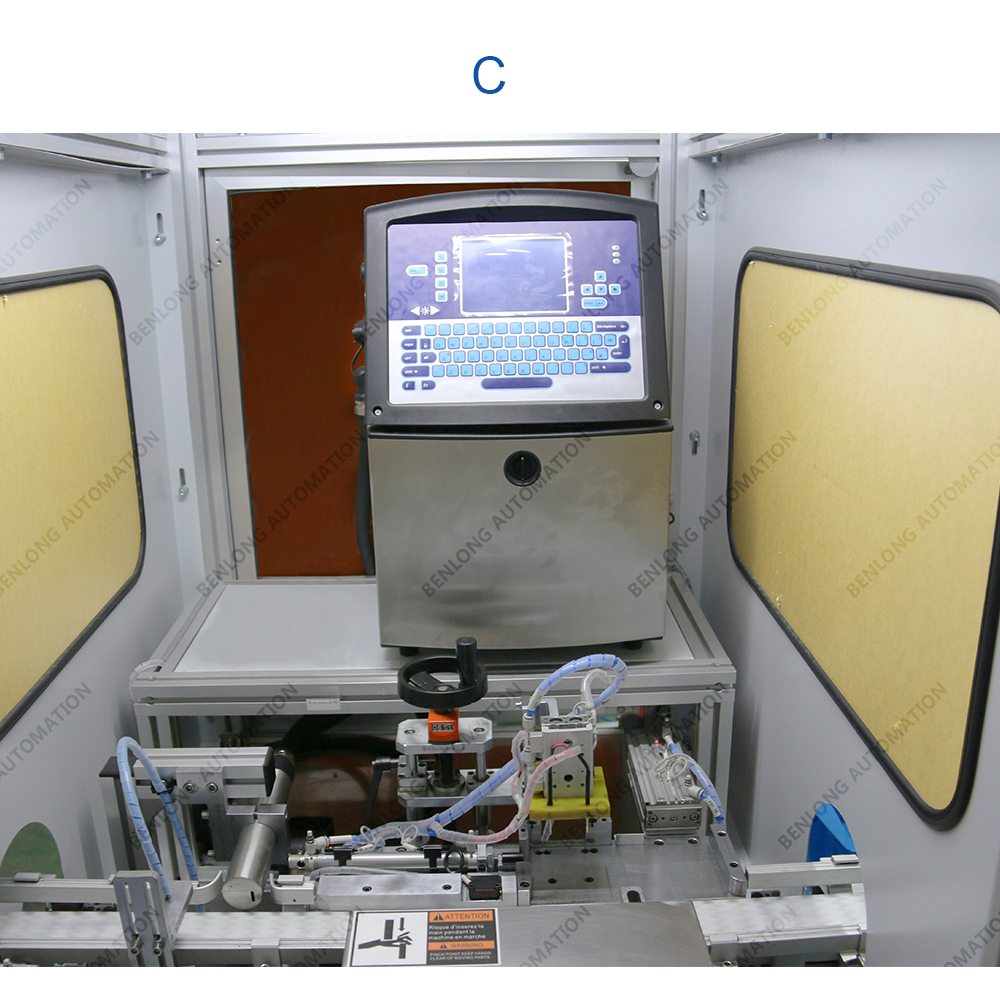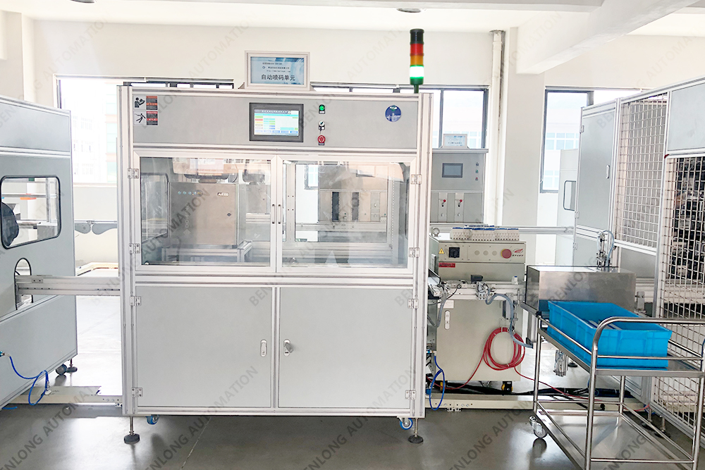 具有自动激光打标二维码、喷条形码或产品ID码、CCD检测、不良品区分、缺料报警、竖立翻转水平、水平翻转竖立等工序的在线监测、