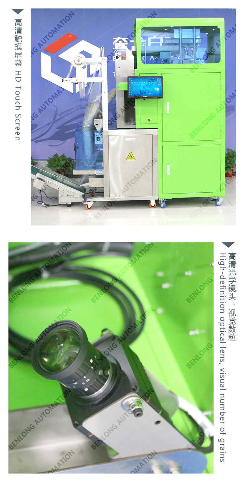 机器视觉数粒,自动放料,自动感应落料,自动封切,自动出包;可单品或者多品种混合投料包装。
