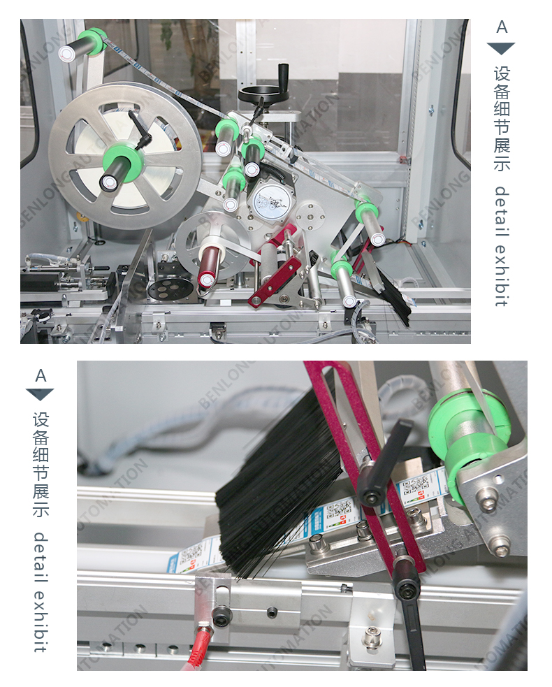 具有自动贴标(二维码标签、条形码标签、ID码标签、图案等)、CCD检测、不良品区分、缺料报警、竖立翻转水平、