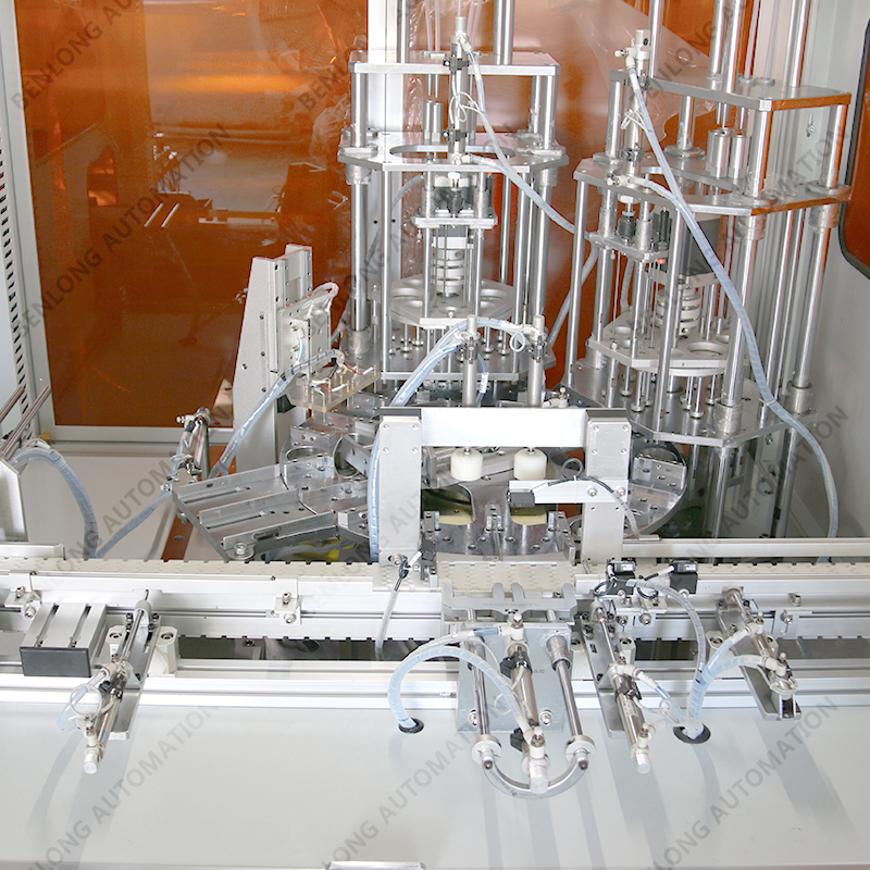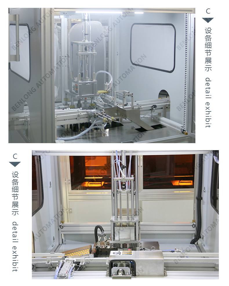 具有自动穿铆钉、CCD检测、不良品区分、缺料报警、翻转竖立等工序的在线监测、实时监控、质量溯源、条码识别、关键元器件寿命监测、数据存储、