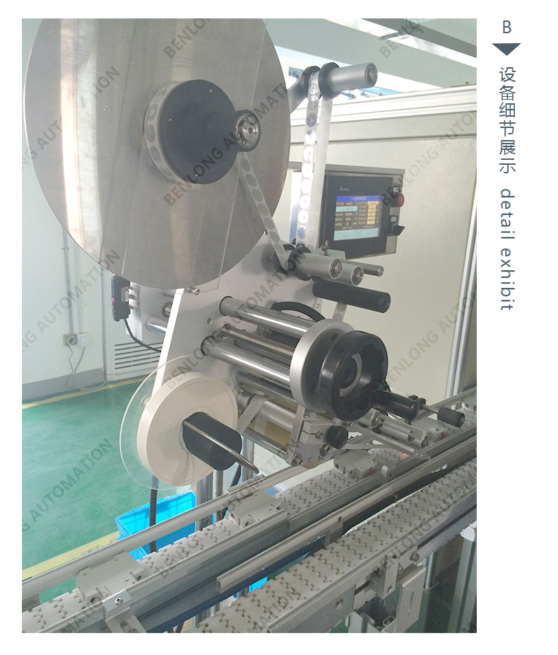 具有自动贴标(二维码标签、条形码标签、ID码标签、图案等)、CCD检测、不良品区分、缺料报警、竖立翻转水平、水平翻转竖立等工序的在线监测、